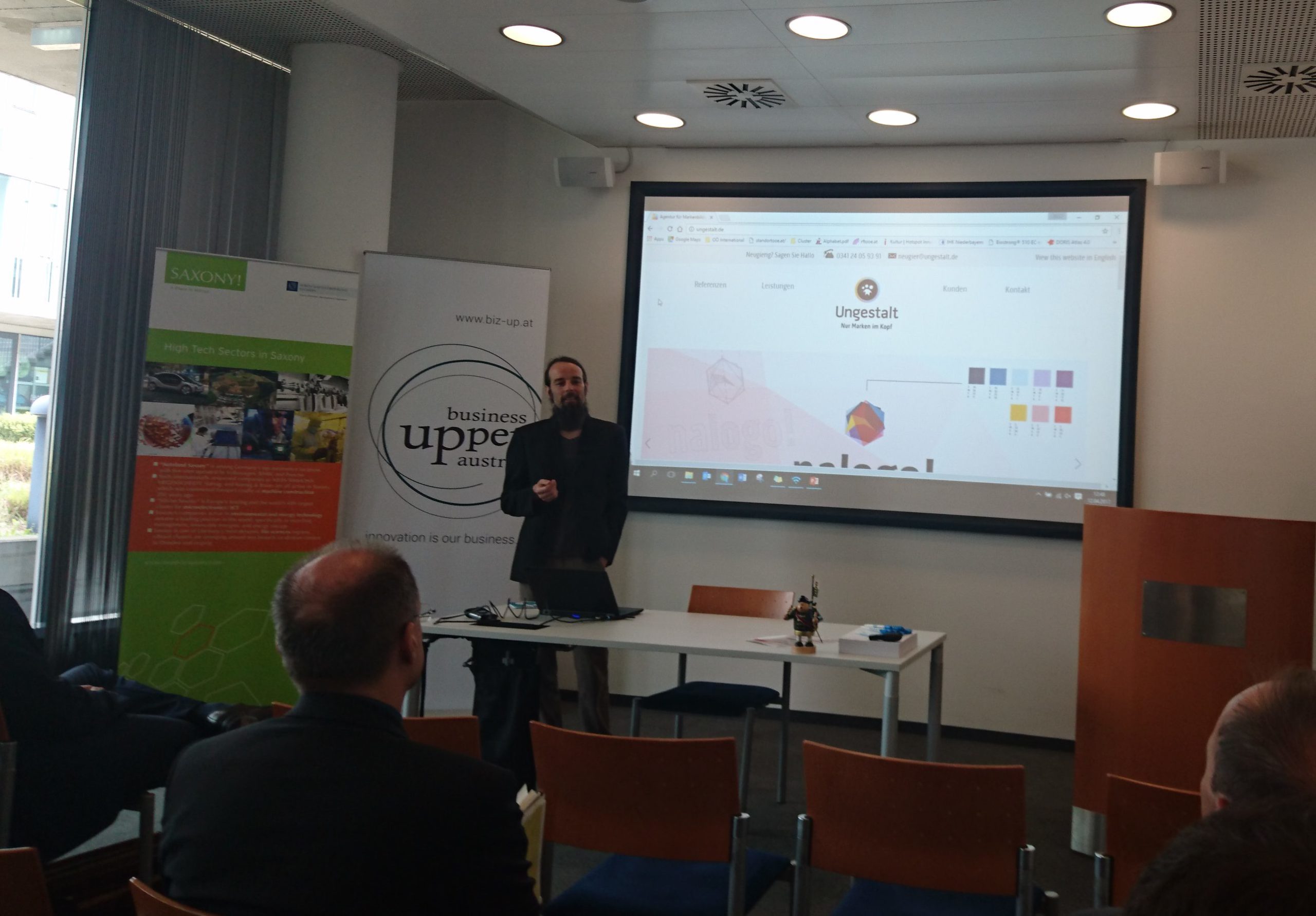Beim Kooperationsworkshop, organisiert durch die Wirtschaftsförderung Sachsen und die Business Upper Austria, stellten sich abwechselnd sächsische und oberösterreichische Unternehmen vor. Die Teilnehmenden wurden von Ministerpräsident Stanislaw Tillich begrüßt. Aus der Kreativwirtschaft gaben die Leipziger Markenagentur Ungestalt und das Chemnitzer Softewareunternehmen chemmedia Einblick in Ihr Portfolio und ihre aktuellen Projekte.
