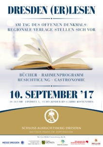 Unter dem Motto “Geschichte zum Anfassen” öffnet das Schloss Albrechtsberg Dresden seine Türen – die sonst nur teilweise zugänglich sind – dem sächsischen Buchmarkt und einem interessierten Publikum. Von 10.00 bis 18.00 Uhr sind auf der DRESDEN erLESEN ausgewählte Lesungen sowie Verlags- und Buchpräsentationen geplant.